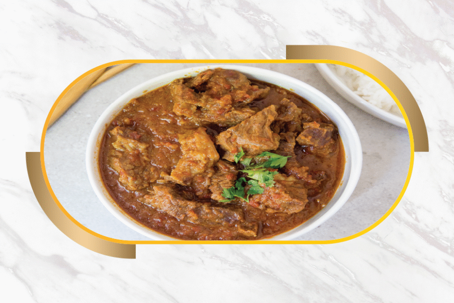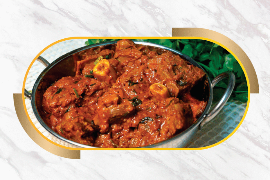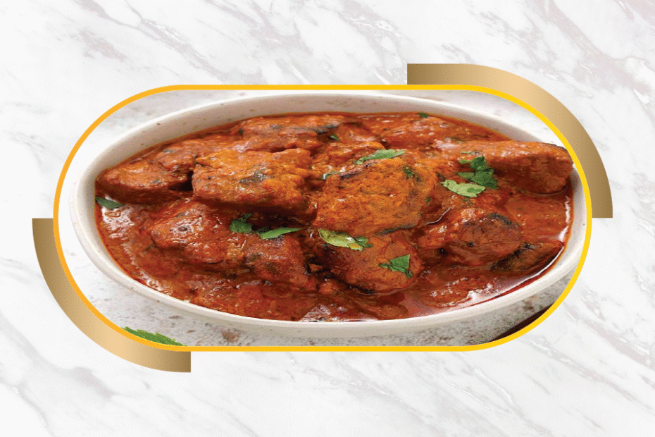 is a flavorful and spicy Indian curry that features tender pieces of lamb leg cooked in a rich, tomato-based sauce.