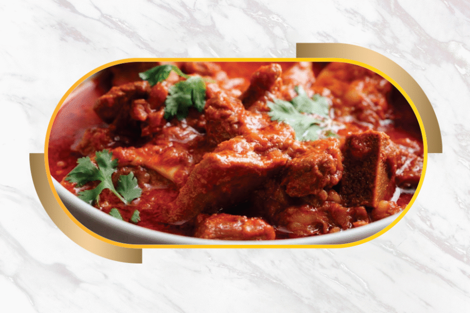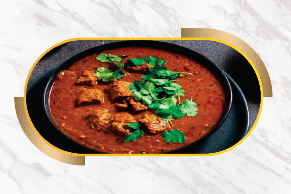Goat Rogan Josh is a signature dish from the Kashmir region of India. The dish is known for its rich, deep red color and complex flavors, which come from a blend of spices including cardamom, cloves, cinnamon, and bay leaves