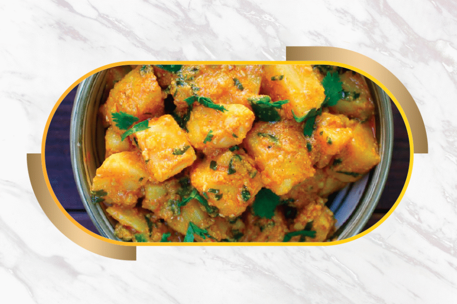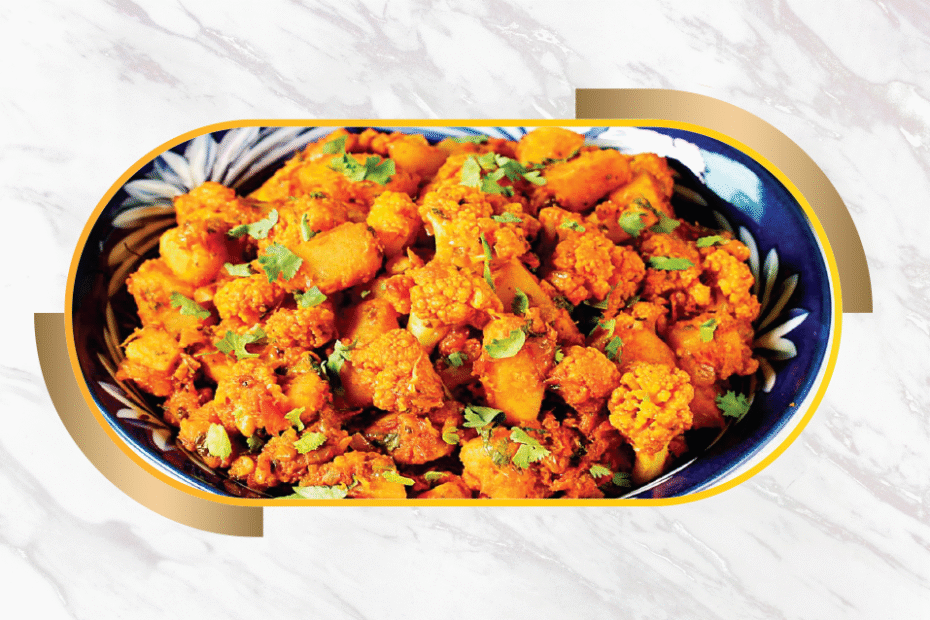 Cauliflower and potatoes cooked with ginger, tomatoes