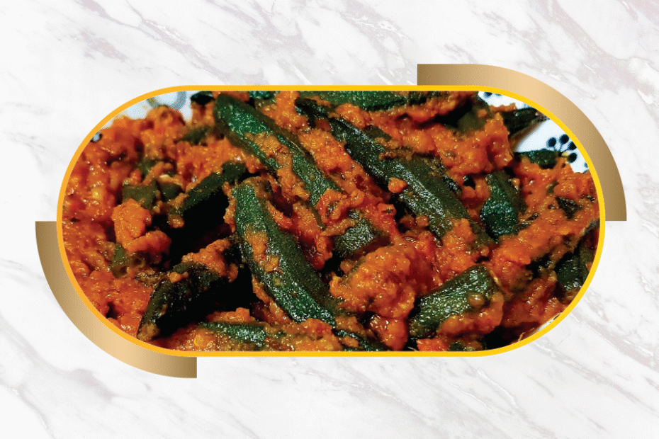 Okra sauteed with onions, tomatoes ginger garlic paste, Indian spices