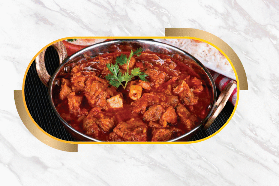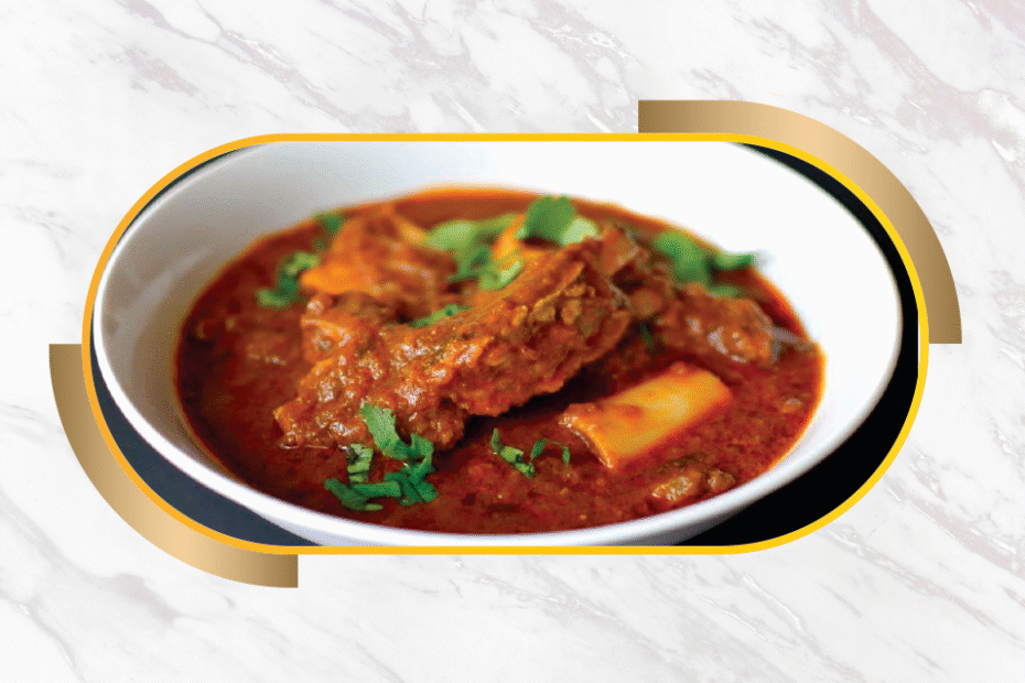 Tender pieces of goat (with bones) cooked in a tomato, Onion curry sauce
