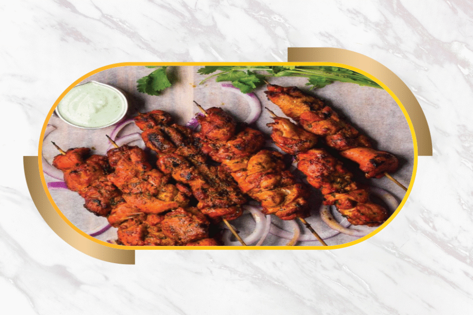 Chicken breast strips marinated in ginger garlic cumin turmeric lemon juice and batter in gram flour then deep-fried served with chutney.