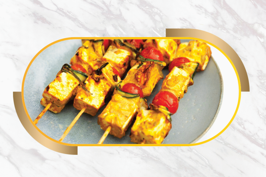 Jumbo shrimp overnight marinated in ginger garlic yogurt and garam masala cooked on grill served with salad.